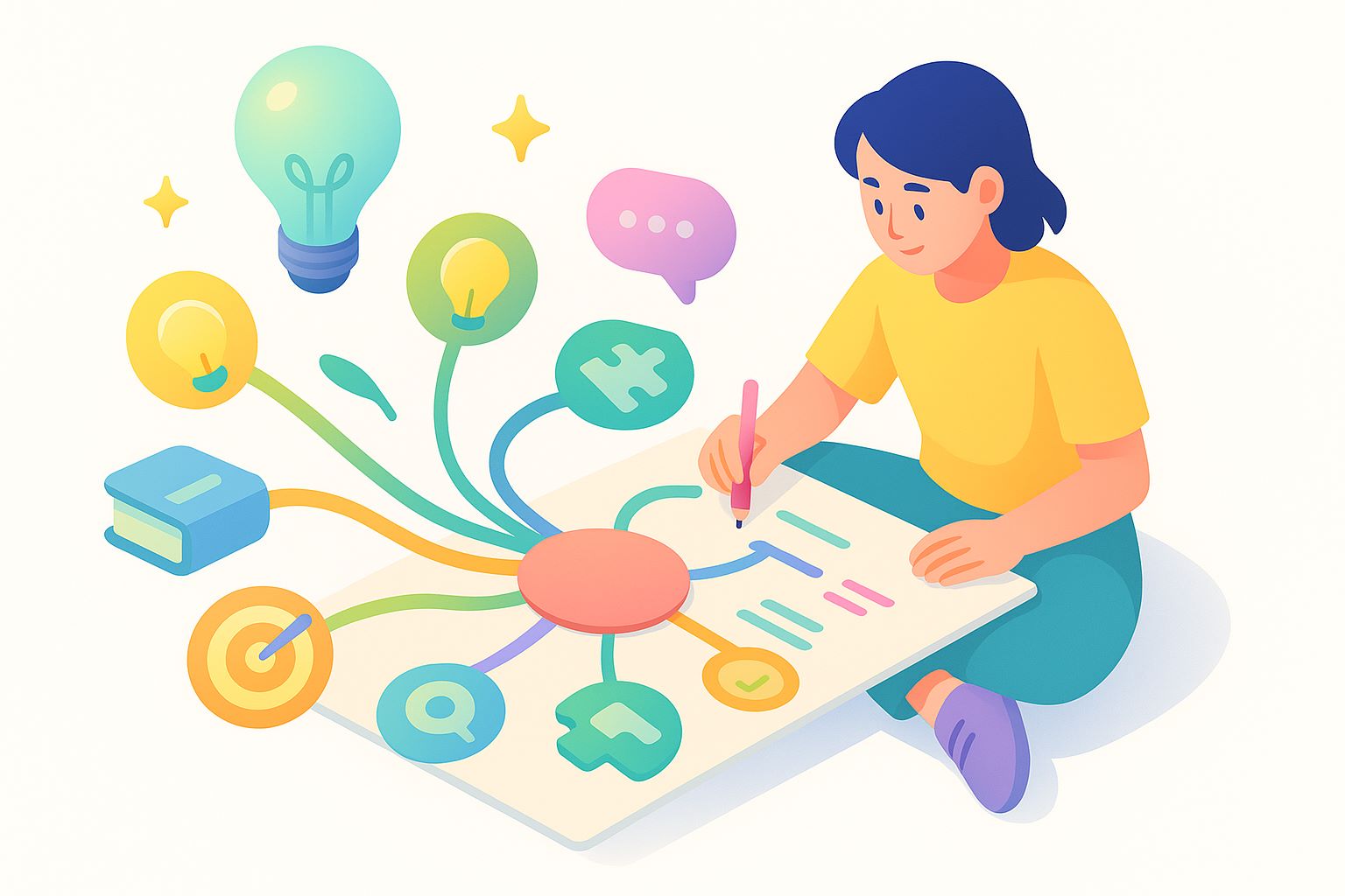 Zihin haritaları, karmaşık bilgiyi sadeleştirerek hafızaya daha kolay yerleşmesini sağlar ve düşünme sürecini hızlandırır.